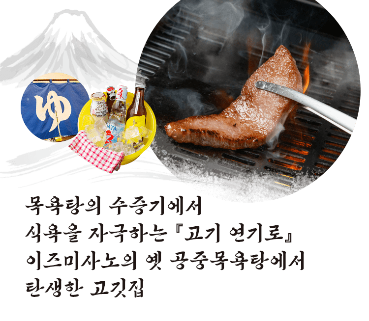 이즈미사노에서 긴 시간 사랑받던 목욕탕 「히노데유」 터에 새롭게 태어난 【야키니쿠 곱창 니쿠타레야】.