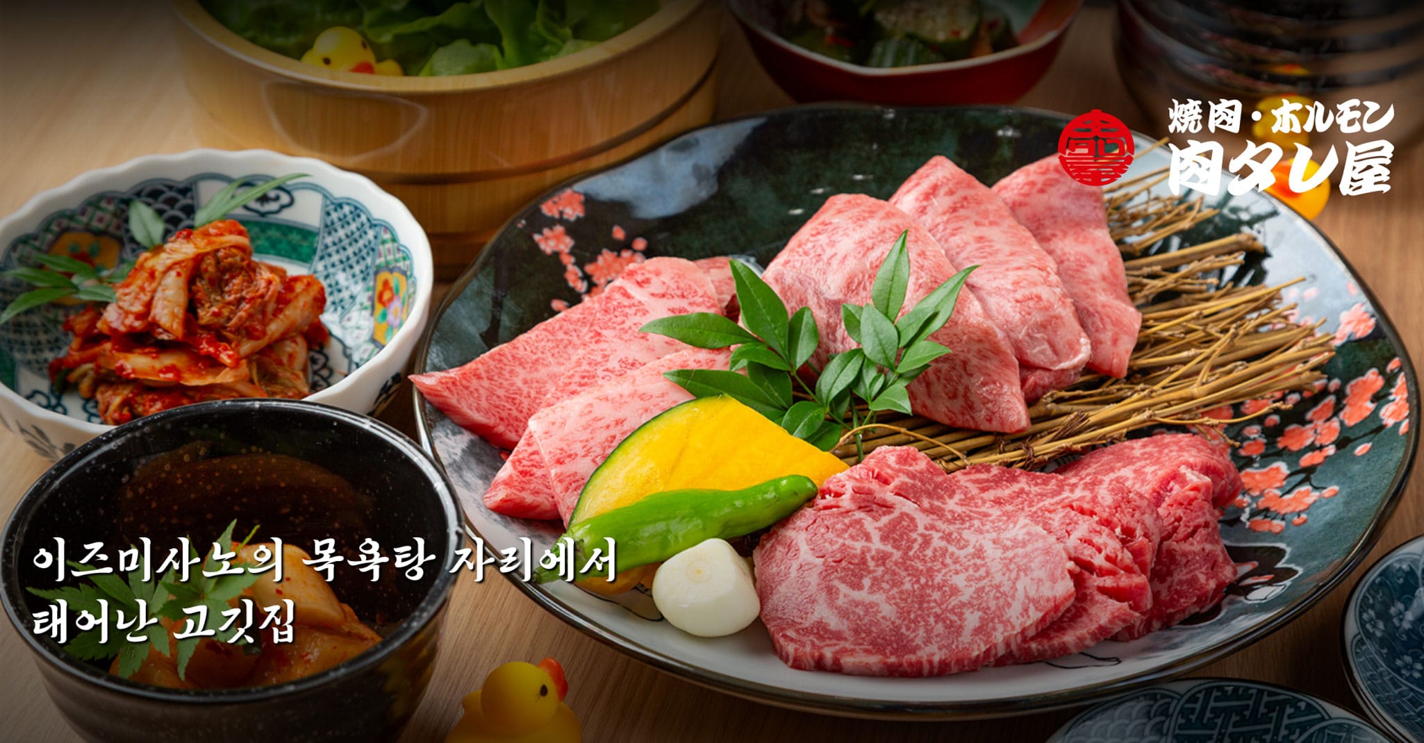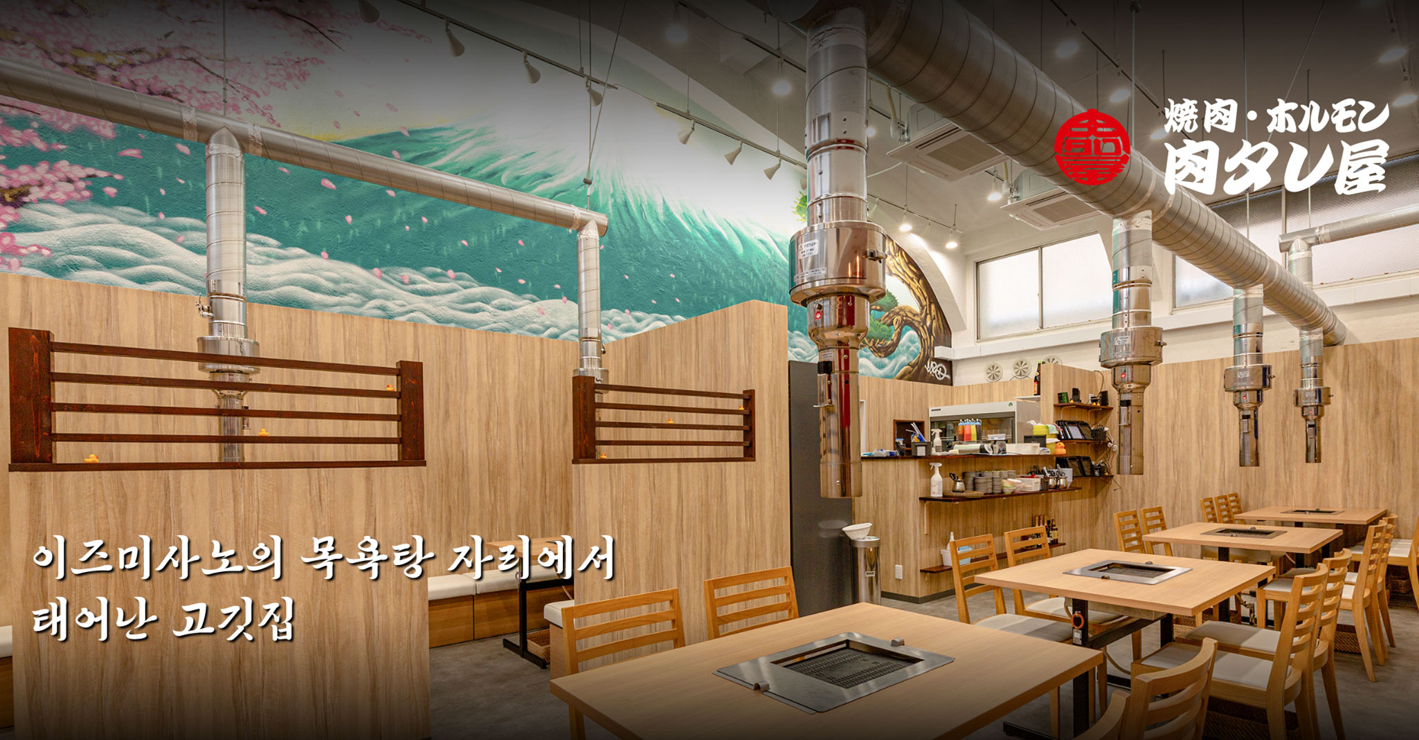 그 따뜻함을 이어받아 탄생한 【야키니쿠 곱창 니쿠타레야】는 목욕탕 자리 특유의 개방감과 편안함이 어우러진 공간입니다.